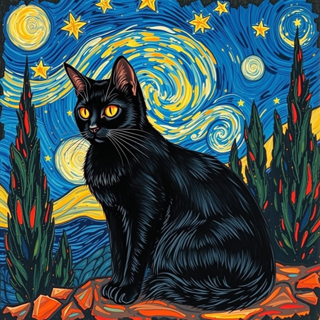 As Clara studied the painting under soft attic light, she noticed a peculiar detail in the background. A shadowy figure didn’t belong. A closer look revealed it: a black cat subtly painted among Van Gogh’s signature swirls and strokes. The cat wasn’t in any known version of his work, and its presence raised more questions than answers. Why would Van Gogh, known for his deep symbolism, include such a mysterious figure?